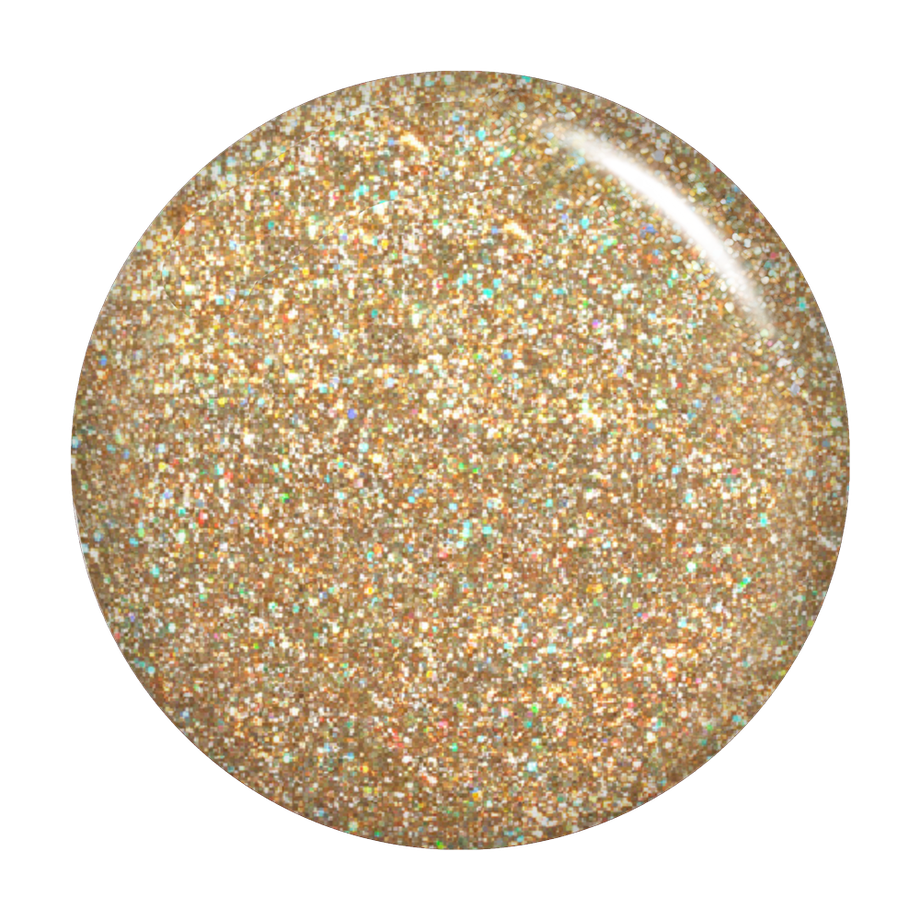 The gold, iridescent sparkle of this translucent polish is a treasure to behold.