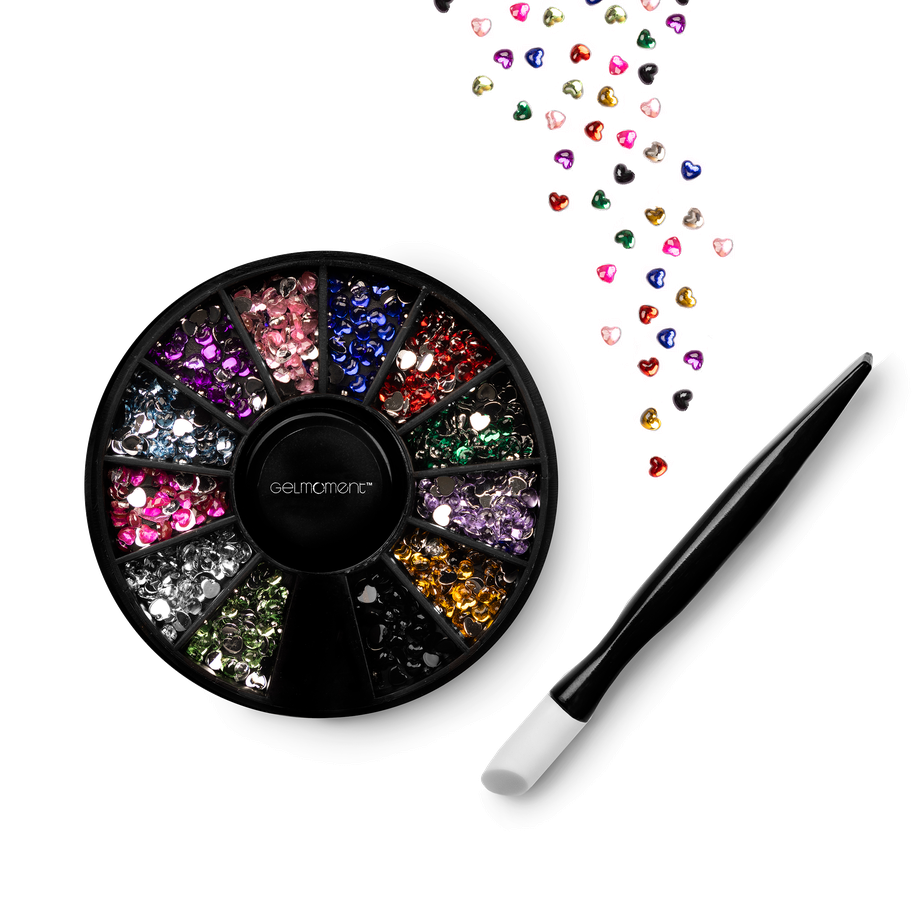Heart mini jewels comes with 12 colours and an applicator stick, and comes packaged in a GelMoment organza sachet.