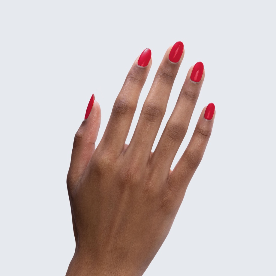Here’s a poppy red polish with a certain je ne sais quoi.